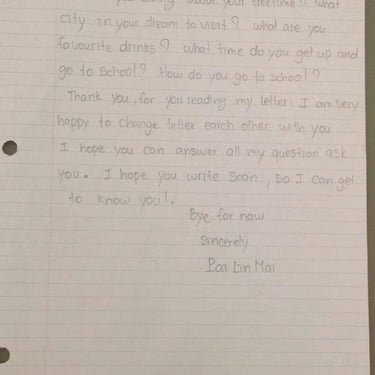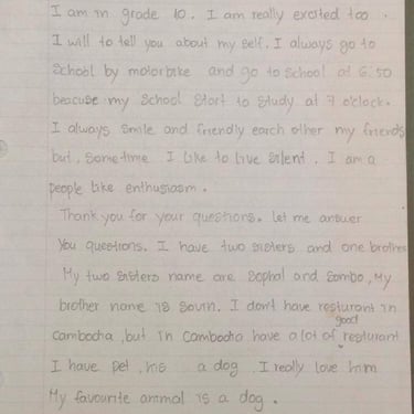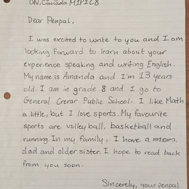 In addition, Dwayne spearheaded a pen-pal exchange pilot, encouraging his students to write letters to their counterparts in Cambodia. We carefully selected students from the advanced class to participate, using this as an opportunity to teach them the basics of letter writing. The result was a heartwarming exchange: the first two letters were written by students in Canada, and the last letter, a beautiful three-page letter, was written by one of the advanced students in Cambodia.
