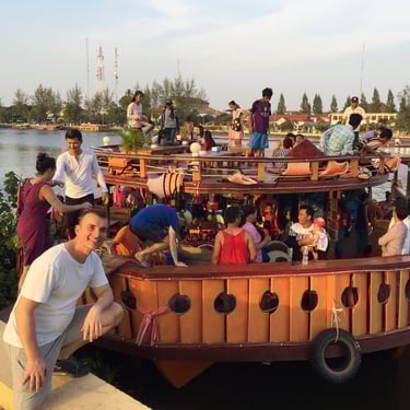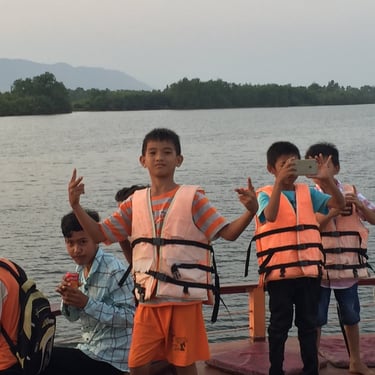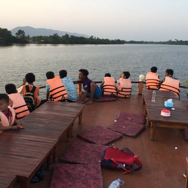 When we returned in April 2018 to check on the school progress, we wanted to create an unforgettable experience for the students. In Kampot, one of the favorite past times for tourists is relaxing at a restaurant overlooking the water or taking a boat ride to watch the sunset. For these local students, it would be an extra-special treat to go on a sunset boat ride.