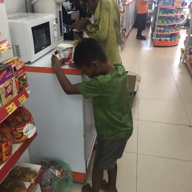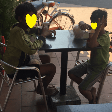 We noticed these 2 kids (brothers, maybe?) in bare feet and well-worn clothes bouncing between street vendors. We caught up to them and used Google translate to ask if they wanted anything to eat. They pointed to a convenient store at the corner and we went in with them. Once inside the store, we gestured at some items we thought they might enjoy but they turn down every suggestion. They ended up only picking out an instant noodle cup each (nothing more, not even cold drinks or ice cream). We sat with them outside as they enjoyed their noodles and tried to maintain basic conversations with them via Google translate (alas, we did not understand their living situation).